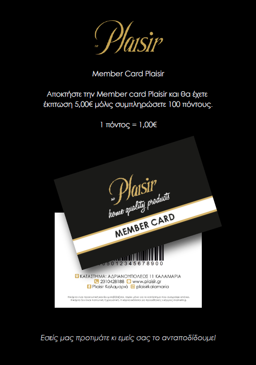 02 Νοέ Uncategorized Member card πελατών 2 Νοεμβρίου, 2025 By plaisir Ζητήστε να αποκτήσετε την Member card πελάτη και με κάθε αγορά σας το κάθε ευρώ αντιστοιχεί σε 1 πόντο. Σε κάθε 100 πόντους θα έχετε... Continue reading
