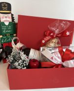 Κουτί δώρου με κόκκινο ή λευκό κρασί Παράγκα, κουτί μελομακάρονα, κεράσματα και χριστουγεννιάτικο διακοσμητικό