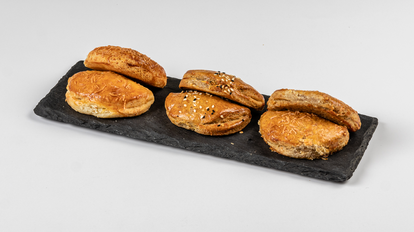 Ποικιλία χωριάτικα πιτάκια (τυρί-σπανάκι-πράσο-κοτόπουλο-ζαμπόν & κασέρι)