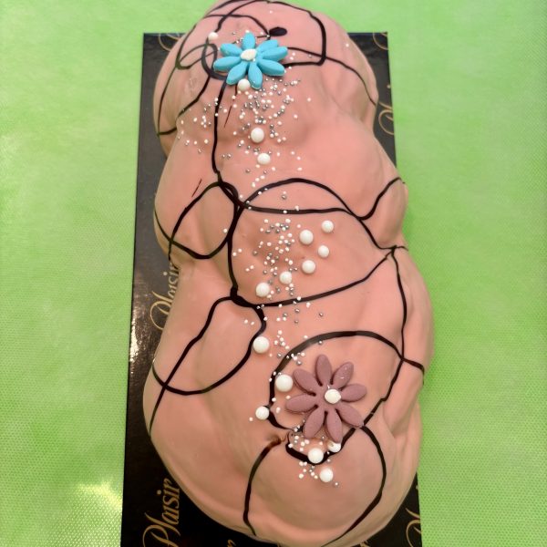Πασχαλινό τσουρέκι γεμιστό με σοκολάτα & επικάλυψη ροζ σοκολάτα Ruby 900γρ. €16.00
